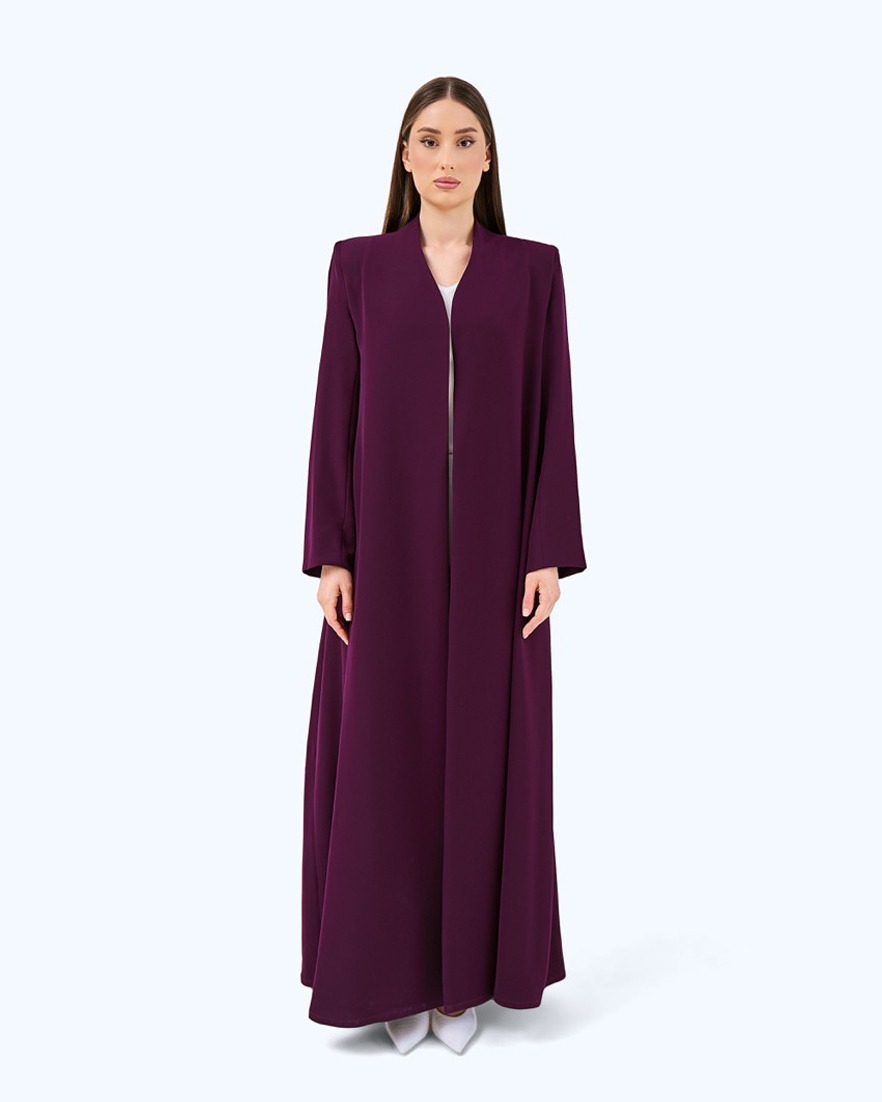 عباية بياقة عالية من قماش الكريب متوسط السُمك بقصّة هيكلية محكمة.